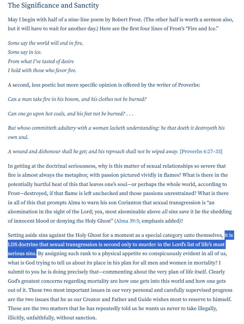 He’s talking about emotional states with moral language and then implicating that because you are an agent - with the capacity to choose - if you don’t make the choice to feel happy, and confident, and certain, and cheerful, then you are a bad person. Even if you’re doing everything right (waking up on time, reading your scriptures, not listening to music) if you don’t also enjoy doing it then you are the lesser missionary, and therefore a morally inferior person.