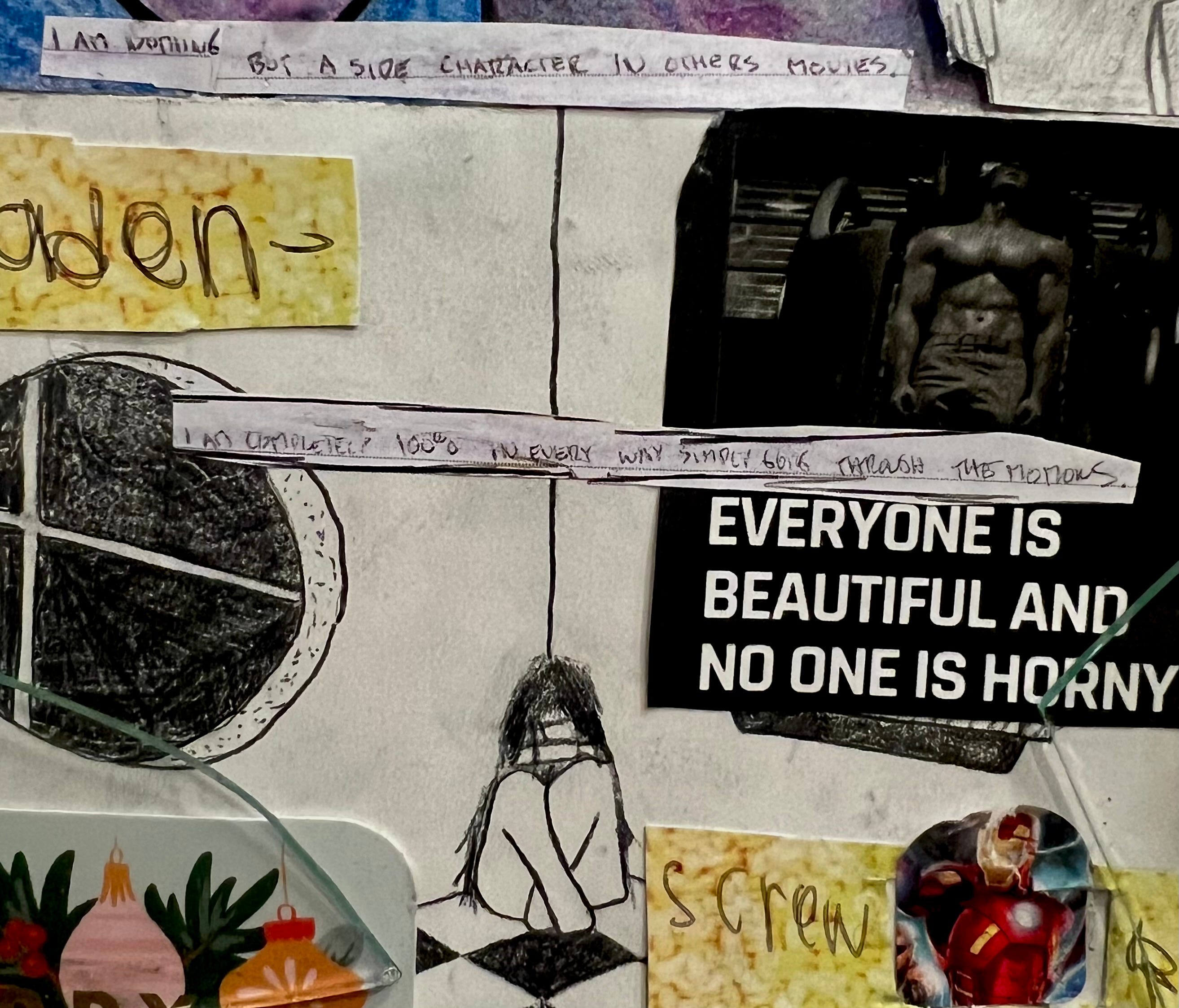 Every once in a while when I was journaling about my experience, though, a few honest things would slip through the cracks. I still have most of those writings intact in my journal, but I ended up cutting out a couple statements and using them for a collage that I made years later.