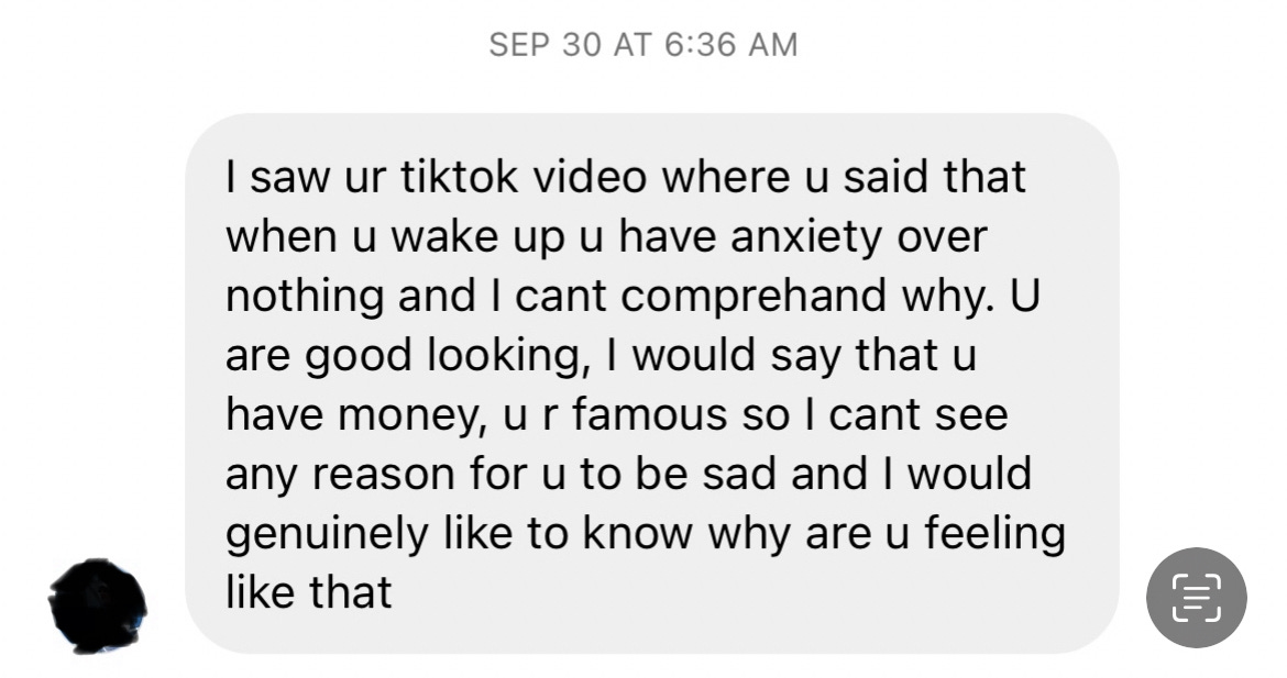Because I don’t have that type of para-social relationship that most influencers have with their followers, I didn’t spend a lot of time thinking about how my public mental breakdown landed with other people. Followers, to me, have always just been this abstract number on a screen. I don’t interact with them, and I’ve never viewed myself as somebody to “be a fan of” or “look up to” in any meaningful way. I’ve seen how dangerous it is when people become obsessed with metrics, and are always in their comments section, and the absolutely out-of-control narcissism that it breeds, and I want to stay as far away from that as humanly possible.