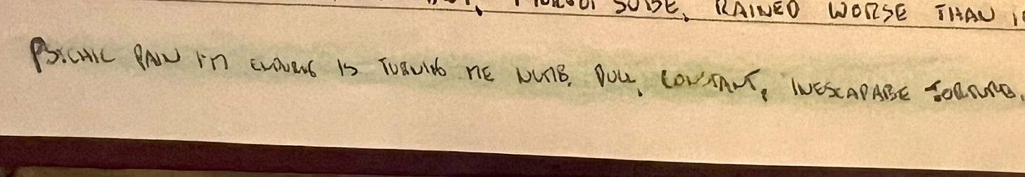 I’d been drowning my entire life and (besides Maddie) not one goddamn person did one goddamn fucking thing about it. When I was a teenager morbidly fantasizing about killing myself nobody did anything. When I was getting bullied nobody did anything. When I was dissociating, and journaling about “my dull, inescapable, psychic pain” on my mission, nobody did anything. When I almost died because I starved myself down to 111 lbs. nobody did anything. When I went through a 4 month (public) mental breakdown - posting naked pictures of myself on the internet and going on manic social media tangents for several hours every day - nobody did one goddamn fucking thing.